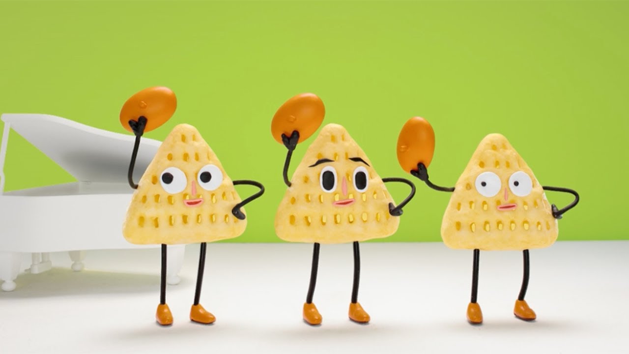 "Polynkey" is a triangular corn snack that was released in 1990. The first TV commercial that aired when it was released featured the "Three Polynkeys," Jean, Paul, and Belle, who were modeled after Polynkeys, dancing and singing, "Polynkey, Polynkey, the secret to the triangle is Polynkey, Polynkey, the secret to our deliciousness is...". The surreal and comical content of the commercial, combined with the cuteness of the "Three Polynkeys," created a buzz. It was created by Masahiko Sato, who later created many hits such as "Dango 3 Brothers" and "Pitagoras Switch."