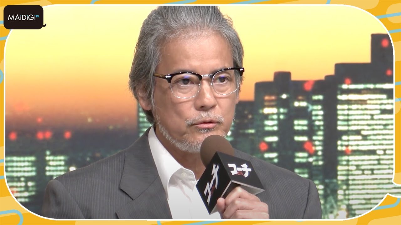 Actor Toshiaki Karasawa appeared at a press conference held at TV Tokyo's headquarters in Minato Ward, Tokyo on October 10th for the network's drama series "Coach" (Fridays at 9pm, with the first episode extended by 15 minutes), which begins on the 17th. He appeared sporting the long white hair and beard that was unveiled at last month's program lineup briefing and caused quite a stir, and spoke about behind-the-scenes stories from the set.